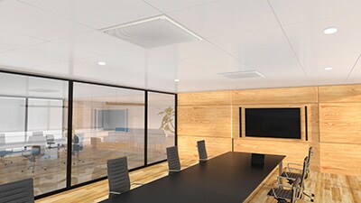 В решении для потолочного монтажа ADECIA, использующем конференц-процессор RM-CR, настройки линий для голосов и детальные регулировки выполняются автоматически, что легко решает сразу несколько сложных проблем, связанных с подключением проводов, организацией сети и оптимизацией акустики для помещения.