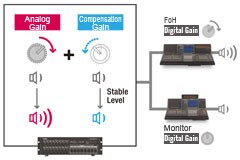 Система обработки живого звука включает в себя микшерную консоль серии CL напротив сцены и микшерную консоль серии QL на стороне сцены. Наряду с мониторным микшированием функция Port to Port сценической консоли QL позволяет ей работать как устройство ввода-вывода с функциональными возможностями примерно на уровне рэк-модуля серии R, за счет чего уменьшаются размеры и сложность системы в целом.