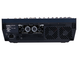 В разделе микшера расположено 14 входов в универсальной конфигурации: каналы 1-6 - это моно-микрофонные/линейные входы, каналы 7/8 и 9/10 могут работать как моно-микрофонные/линейные входы, так и стереолинейные входы, а каналы 11/12 и 13/14 - это стереолинейные входы. Для подключения к внешним усилителям мощности и процессорам эффектов есть выделенные разъемы. Стереоканалы 11/12 и 13/14 имеют разъемы типа RCA для прямого поключения CD-проигрывателей или других воспроизводящих устройств с возможностью использования трехполосных эквалайзеров. Каналы 1-6 оборудованы трехполосным параметрическим эквалайзером средних частот, каналы 7-14 имеют трехполосный эквалайзер без возможности настройки на среднюю часть аудиоспектра. Также в системе используется два девятиполосных графических эквалайзера для оптимальной подстройки звука под колонки или акустику помещения.
