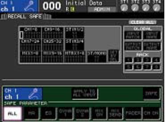 Память для шаблонов настроек консоли LS9 позволяет быстро сохранять и восстанавливать все параметры консоли, включая уровень усиления головного усилителя. Функцию Recall Safe можно использовать, чтобы исключить определенные каналы из шаблона настроек. Таким образом можно добиться того, что параметры каналов эффектов или MC не изменяются при восстановлении настроек. Также есть функция Recall Focus, позволяющая указать, параметры какой группы будут изменены при восстановлении настроек: головной усилитель, виртуальная стойка эффектов, входные и выходные фейдеры, а также входные и выходные каналы.