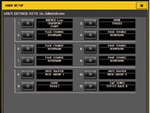 Множество функций консоли, в том числе «Sends on Fader» (отправить на фэйдер), «Tap Tempo» (задание темпа) и «Set by Sel» (позволяет клавишам, назначенным пользователем, функционировать совместно с клавишами выбранных каналов) могут быть назначены на 12 определенных пользователем кнопок, обеспечивающих моментальный доступ к этим и многим другим функциям.