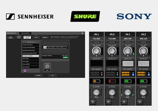 Начиная со встроенного ПО версии 5.0 консоли RIVAGE PM поддерживают управление популярными на рынке системами беспроводного ушного мониторинга, что расширяет возможности управления звуковыми конфигурациями, построенными на основе продуктов серии RIVAGE PM.