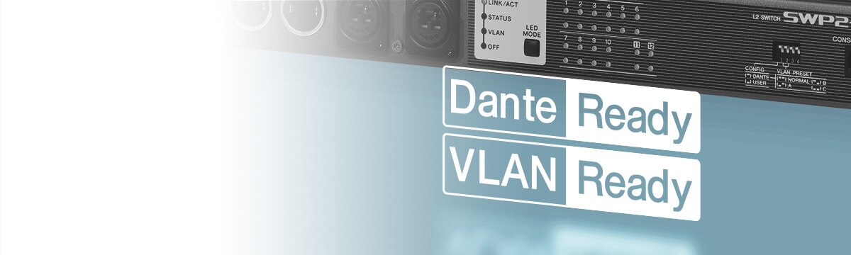 По-настоящему эффективная сеть должна быть способна обрабатывать несколько служб одновременно: связь по сети Dante, StageMix и другие функции смарт-устройств, компьютерное ПО для управления цифровым микшером или усилителем мощности, а также по необходимости и больше. Но чем больше различных данных передается по сети, тем больше вероятность возникновения в ней помех и проблем. Использование виртуальных доменов VLAN для разделения различных видов данных можно считать идеальным решением, но для такой конфигурации нужен некоторый опыт в сфере информационных технологий. Сетевые коммутаторы серии SWP2 включают три встроенных набора параметров VLAN, которые можно легко выбирать с помощью DIP-переключателя. Также предусмотрен режим USER для детальной настройки конфигурации VLAN вручную.
