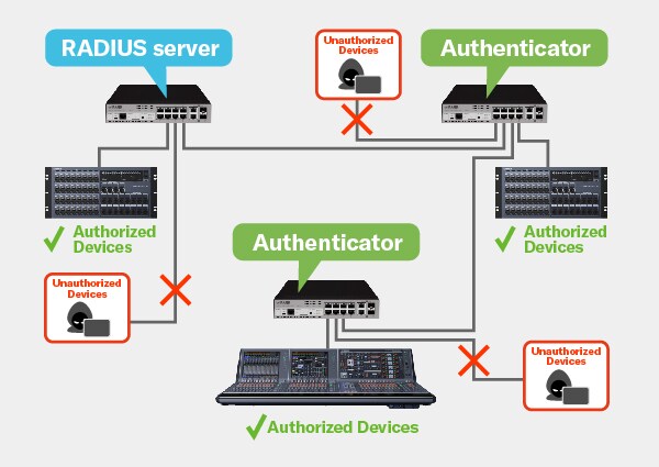 - Настроив один коммутатор в качестве сервера RADIUS и связав с ним другие коммутаторы, можно эффективно воспрепятствовать неавторизованному доступу к сети и улучшить ее защиту.