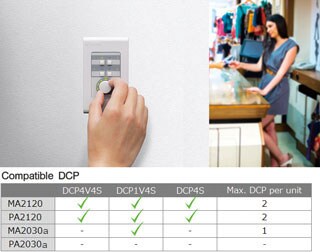 * DCP4V4S, DCP1V4S и DCP4S. К усилителю MA2120 или PA2120 возможно подключение до двух панелей одновременно. К MA2030а можно подключить одну панель DCP1V4S.