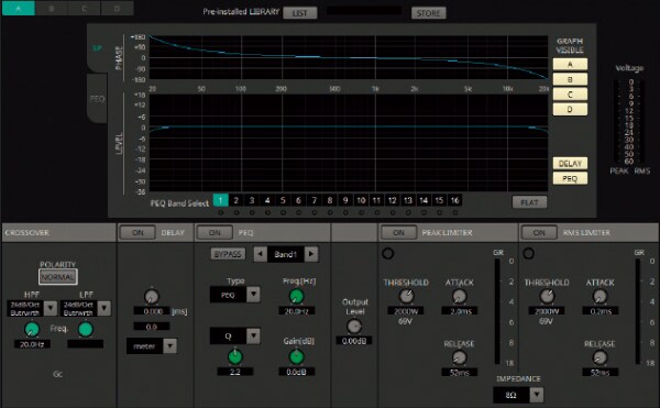- Процессор для акустических систем, включающий 16-полосный параметрический эквалайзер, разделительный фильтр, прочие фильтры, дилэй и ограничитель