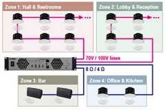 - 4x 125W at 100V/70V lines