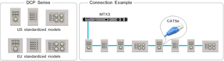 DCH8 делит линию управления от главных устройств, таких как Yamaha серии MTX/MRX, на несколько (до 8 линий). Благодаря этому можно организовывать системы разным образом, используя сочетание звездообразных и гирляндных подключений в качестве повторителя сигнала между главным устройством и панелями управления. Расстояние подключения устройств серии DCP / DCH8
