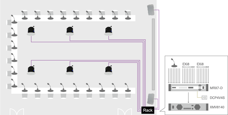 В дополнение к MRX7-D, с помощью мастера можно добавлять и располагать нужным образом матричные процессоры серии MTX, усилители мощности серии XMV, цифровые панели управления DCP и расширители входов и выходов EXi8/EXo8.