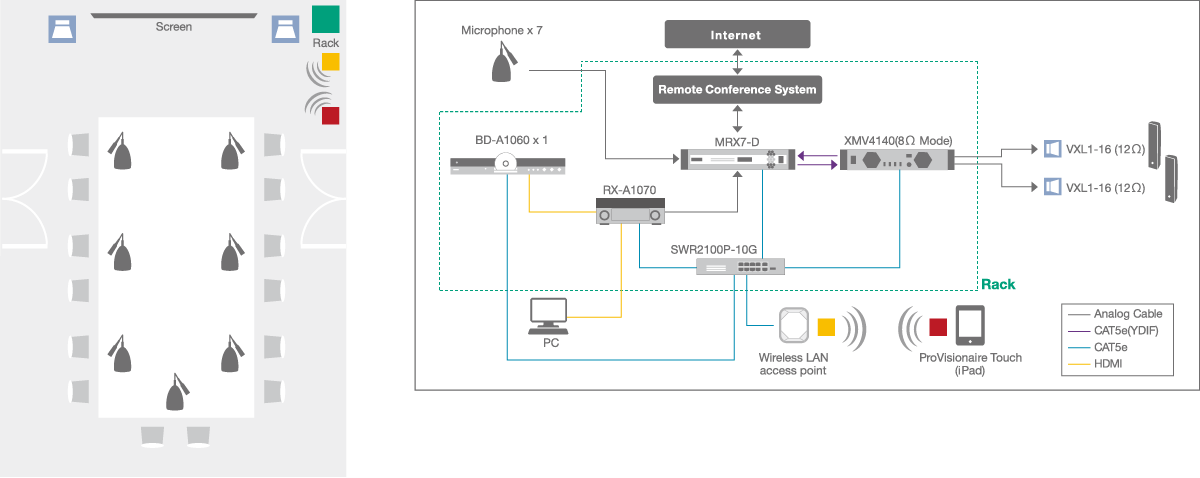 С помощью одного устройства iPad можно управлять различными источниками музыки: CD-проигрывателями, сетевым хранилищем данных, мобильными устройствами, интернет-радио и даже фортепиано. Кроме того, поддерживаются проигрыватели дисков Blu-ray и AV-ресиверы компании Yamaha. Используя одно устройство iPad, можно удобно управлять системой, переключая источники видео и музыки в зависимости от событий в ресторанах или банкетных залах и совместно регулируя громкость микрофона и воспроизведение видео в конференц-зале.