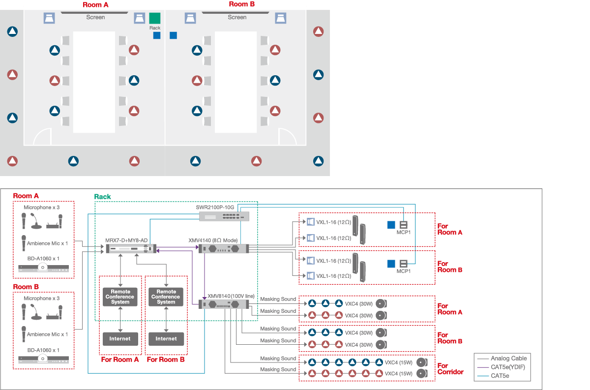 Необходимость сохранения конфиденциальности в конференц-залах и комнатах для совещаний, особенно в финансовых и медицинских учреждениях, становится все более серьезной проблемой. Система Speech Privacy использует оригинальный метод маскировки звука, чтобы не допустить утечки конфиденциальной информации. Вместо того, чтобы маскировать разговор громким шумом, на основе человеческой речи с помощью оригинального процесса синтезируется специальный тон, эффективно маскирующий информацию в разговоре. Этот подходит позволяет защитить информацию за счет маскировки относительно малого объема, что помогает сохранить комфортность общения на конференции. Звук, синтезированный на основе человеческой речи, делает разговор неразборчивым для тех, кто пытается его подслушать. Эта функция не приглушает звук разговора.