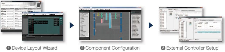 По мере роста масштаба и требований к управлению аудиосистемами соответственно возрастает количество необходимых устройств и общая сложность. При использовании MRX7-D и специального ПО MTX-MRX Editor, с помощью программного мастера можно быстро расположить устройства ввода и вывода и совместить внутренние компоненты обработки MRX7-D нужным образом. Одна простая программа включает все необходимое для комплексного проектирования системы и управления ею.