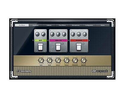 AmpSimulator – это эффект дисторшн, который имитирует звук различных комбинаций гитарного усилителя и кабинета. Доступен широкий выбор моделей усилителей и кабинетов.