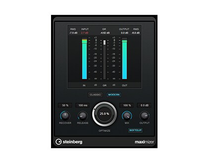 Maximizer повышает громкость аудиоматериала без риска клиппинга. В плагине есть два режима: Classic (Классический) и Modern (Современный), в которых используются разные алгоритмы и параметры.