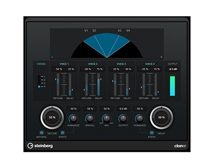 Cloner добавляет до 4 расстроенных и задержанных голосов к сигналу для получения богатых эффектов модуляции и хоруса.