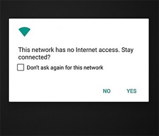 1. Если ваше устройство не сможет подключиться к Интернету, появится диалоговое окно, как на рисунке слева. Нажмите кнопку «ДА», чтобы установить соединение. Будет подключена локальная сеть.