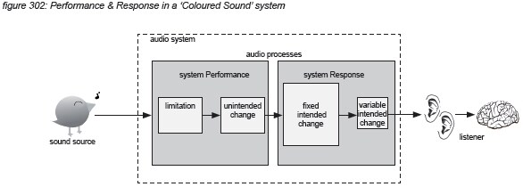 Of course individual listeners can disagree with the decisions made by product manufacturers and system designers, differing in their preferences for individual processes in the audio system. Even when preferences are averaged, audiences for different genres of music (eg. pop, classical, jazz) might have different average preferences for an audio system’s process. To accommodate these differences, there are two design philosophies that product manufacturers and system designers can apply: ‘natural sound’ and ‘coloured sound’. To define these philosophies, first the concept of system Performance and system Response is presented.