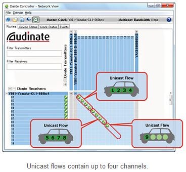 In most cases, the audio data that travels through a cable will not exceed 512 channels (at 48 kHz), so in normal circumstances, unicast is the best choice. That being the case, when is multicast absolutely necessary? It is when a transmitter runs out of flows.