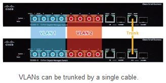 You can provide connections between switches for each VLAN, but you can also use VLAN tagging so that data for various VLANs can be transferred over a single trunk (cable). This enables you to create virtual networks that are separate from the physical wiring.