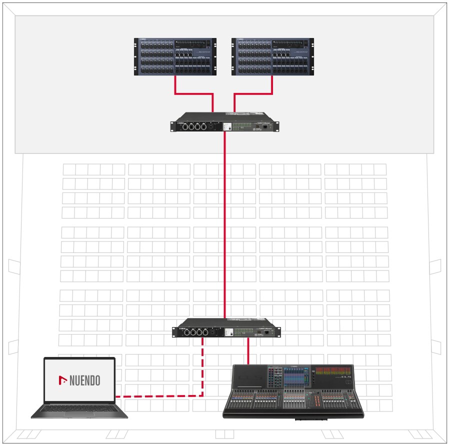 Поскольку пользователи Dante используют логическую маршрутизацию вместо физических соединений точка-точка, сеть можно настроить, используя доступные Dante-порты, всего несколькими простыми действиями.