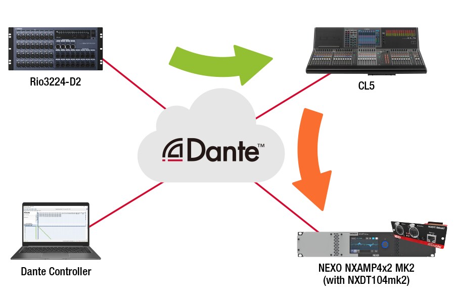 Клиенту нужно только подключить кабель, и аудиосистема Dante будет готова к использованию.
