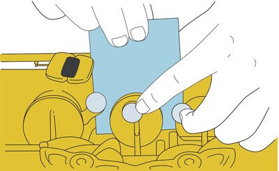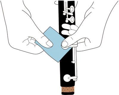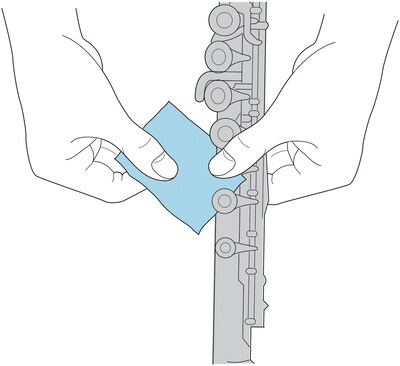 Поместите чистящую бумагу между подушкой и тональным отверстием, а затем осторожно нажмите на клапан.