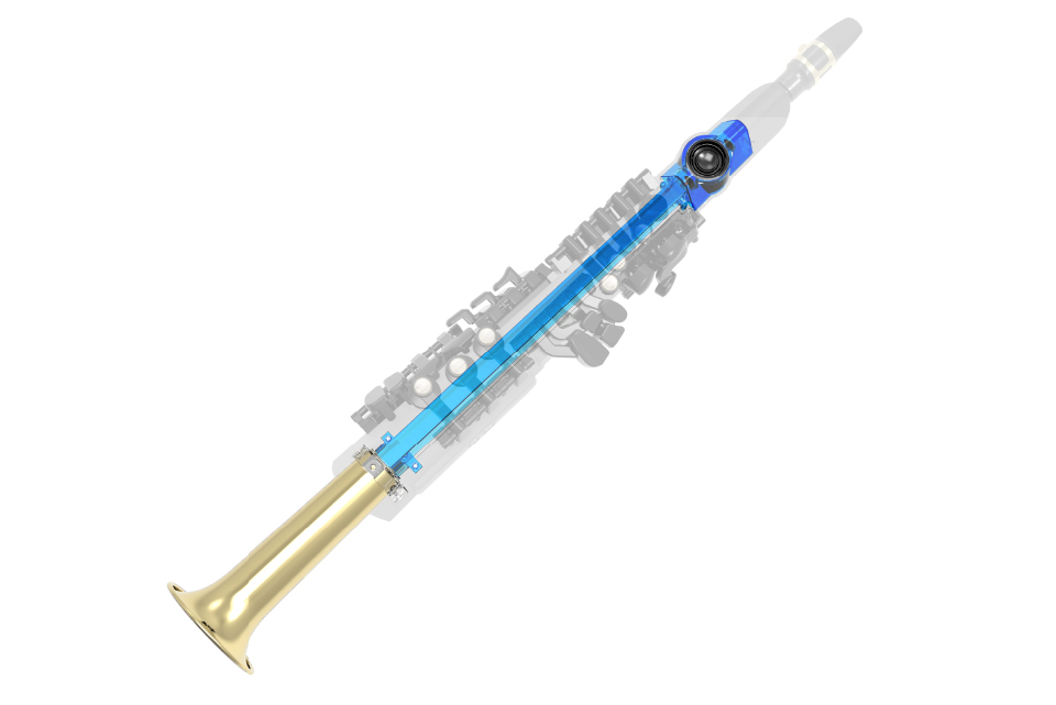 Уникальная система Integrated Bell Acoustic System компании Yamaha позволяет воспользоваться и преимуществами высококачественного цифрового звука, и превосходной выразительностью акустического духового инструмента. Эта инновационная система, которая состоит из динамиков, корпусов, акустической трубки и настоящего латунного раструба, реагирует на то, как вы дуете в мундштук, и воспроизводит через динамики соответствующий цифровой звук, вызывающий резонанс и вибрации в раструбе. Точнее, от звука резонирует весь корпус, и вы ощущаете эти вибрации губами через мундштук и кончиками пальцев через клапаны. В результате инструмент словно оживает, вибрируя во время игры, чтобы вы ощущали выразительность акустического саксофона, пользуясь широкими возможностями цифрового инструмента.