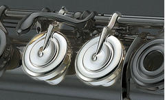 Utilizes the “pinless left-hand key system,” the ideal configuration for handmade flutes. This improves high F-F# key operation, and because there are no pins, maintenance is easier.
