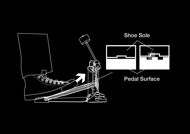 The pedal angle can be set freely to any angle without affecting beater angle. This lets you set the pedal angle you want when the pedal is not pressed. A tuning key is used to make the adjustment, which also lets you align pedal height with your sub, and hi-hat pedals. (FP/DFP9500 Series)