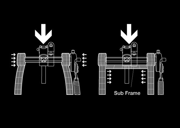 Adding a sub-frame just below the rocker shaft, which is subject to the brunt of the load placed on the foot pedal, provides greater durability and stability that withstands intense pedal work.