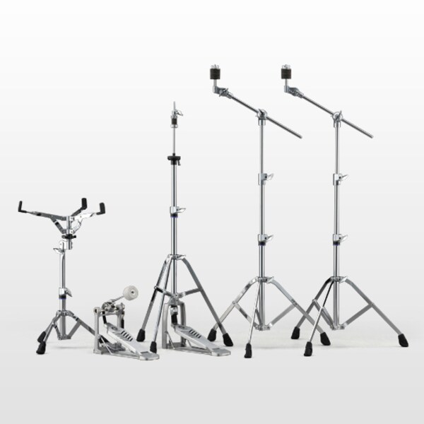 *рекомендованная ценаВсе стойки в данном наборе оснащены двойными ножками. Несмотря на лёгкость, эти стойки вместе и педаль с цепью выдержат удар барабанщиков, играющих тяжёлую музыку.