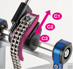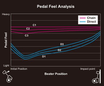 Прямой привод создает прямую связь между футбордом и колотушкой, мгновенно передавая колотушке движения ноги барабанщика. Соединение в нижней части цепи можно переместить в одно из трех положений, благодаря чему барабанщик может настроить работу педали в соответствии со своими предпочтениями.