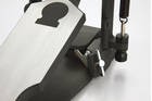 Можно установить педаль под любым углом, угол педали регулируется независимо от угла наклона колотушки. Это позволяет максимально удобно установить педаль, когда она находится в ненажатом положении. Для регулировки используется настроечный ключ, с помощью которого также можно установить высоту педали по высоте вспомогательной педали и педали для хай-хэта.