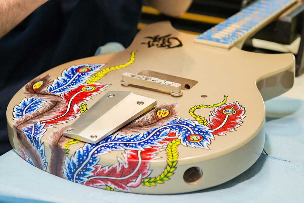 «Когда я посетил мастерскую по изготавлению инструментов Yamaha, я почувствовал невероятно преданное отношение мастеров к своему делу», — продолжает Хиро. «Я знал, что смогу научиться чему-то, учитывая, с какой страстью Yamaha относится к созданию гитар. Поскольку между нами было огромное взаимное уважение, я сказал: "Хорошо! Давайте сделаем что-то вместе!»