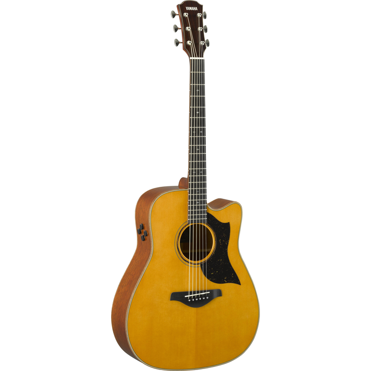 The A1M, traditional western body cutaway guitar, features solid sitka spruce top with scalloped bracing and mahogany back and sides. Yamaha's original SRT piezo pickup ensure solid plugged-in performance.
