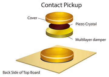 A conventional contact pickup mounted underneath the saddle vibrates freely allowing it to pick up the natural body sound. On the other hand, it can pick up too much body sound resulting in feedback making positioning difficult.