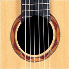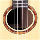 Отверстие в верхней деке украшается вставками из махогони, падаука и перламутра. Серия NCX имеет круглое отверстие (слева), серия NTX имеет овальное (справа).