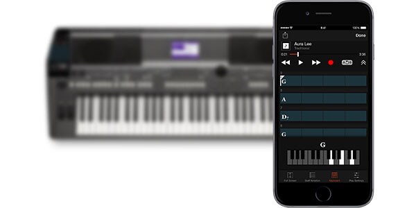 Беспроводное подключение вашего устройства к инструменту позволяет передавать звук для воспроизведения через динамики инструмента. Приложение Chord Tracker также передает информацию об аккордах. Вы даже можете записать свое исполнение на устройство в виде аудиофайла и поделиться им с друзьями по электронной почте (в формате AAC или WAV).