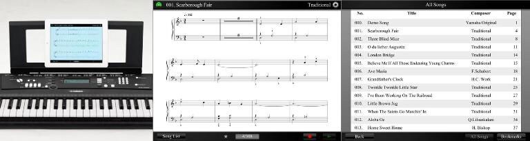 The pages of the sheet music advance automatically as the song plays on the EZ-220.* See the score for all 100 preset songs in the Yamaha EZ-220 keyboard. (Without EZ-220, 10 songs are available.)*Record your playing and/or singing through the iPad's built-in microphone.