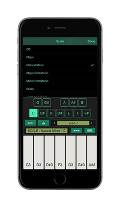 You can play Arpeggiator and Chord pads in addition to keyboard with various scales