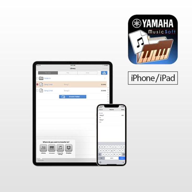 Данные композиции можно передать прямо на инструмент Yamaha, подключив iOS-устройство с помощью Wi-Fi или кабеля. Пожалуйста, обратитесь к «Руководству по подключению iPhone / iPad» для получения информации о том, как подключить iOS-устройство к вашему инструменту.
