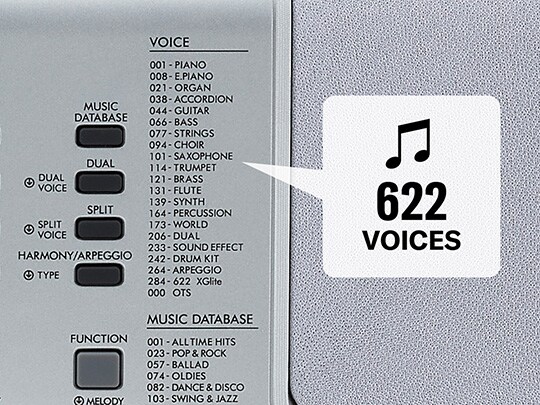 YPT-370 включает недавно разработанную микросхему тон-генератора, обеспечивающую потрясающие улучшения в плане качества звука и эффектов. Благодаря этой новой микросхеме вы можете наслаждаться объемной библиотекой из 622 тембров инструментов, в которой вы найдете идеально подходящие варианты для любого выбранного вами жанра. Она также включает уникальные тембры Super Articulation Lite, воспроизводящие трели и шум от движения пальцев по струнам инструментов, таких как виолончель и мандолина, с потрясающим реализмом, обеспечивающим превосходную аутентичность звучания.