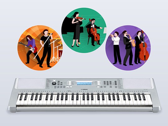 YPT-370 — это 61-клавишная модель портативного синтезатора, которая отлично подходит не только тем, кто использует подобный инструмент впервые, но более опытным музыкантам, которым нужен инструмент для выступлений. В ней установлена клавиатура с чувствительностью к силе нажатия, обеспечивающая большие возможности выразительного исполнения, и встроено огромное количество функций, благодаря которым даже новички могут сразу начать получать удовольствие от игры.