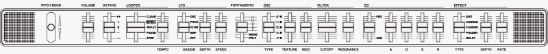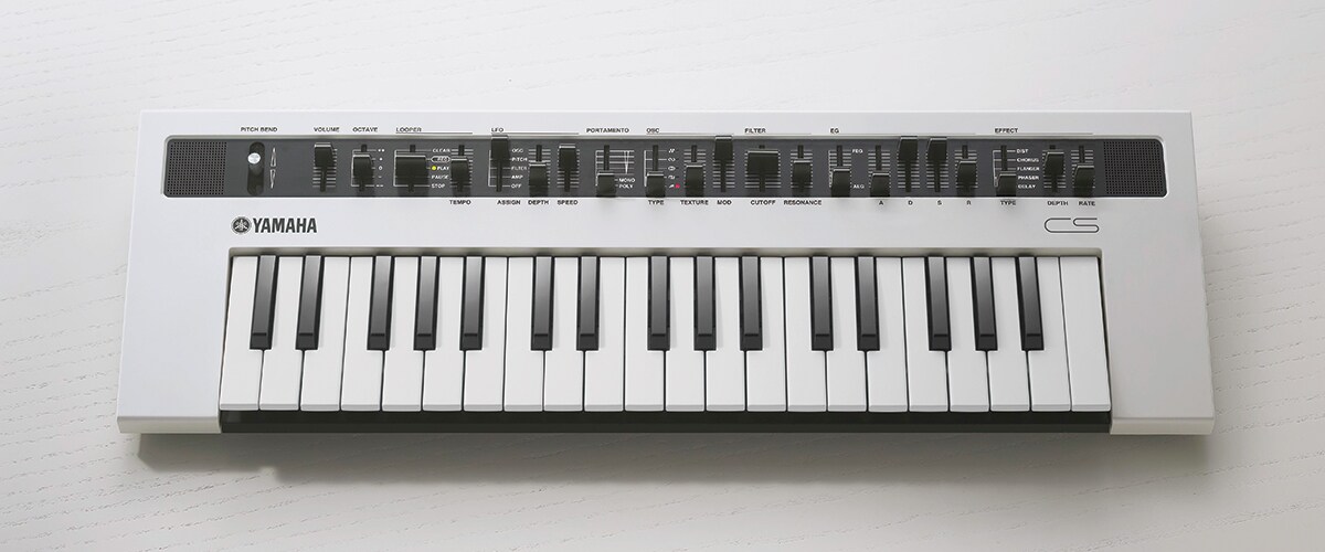 The reface CS Portamento slider has two functions. It controls the typical Portamento effect: switching reface to 8-note polyphonic to 1-note monophonic and controlling Portamento time in monophonic mode.