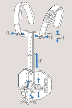 Для оптимального баланса между весом и прочностью корсета используется алюминиевый сплав. Предусмотрена регулировка крепления для удобства посадки. Доступен широкий диапазон комбинаций размеров для инструментов.