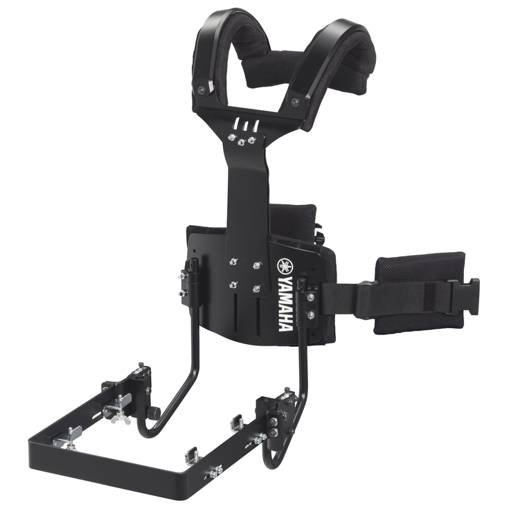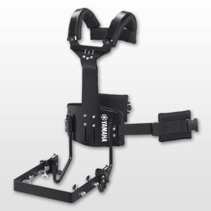Adjustment mechanisms provided for the belly plate, chest plate, and arm attachment sections make it easy to achieve an optimum fit for users with a wide range of body shapes, while also allowing easy adjustment of instrument height to suit personal preference and maximize playability.