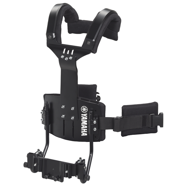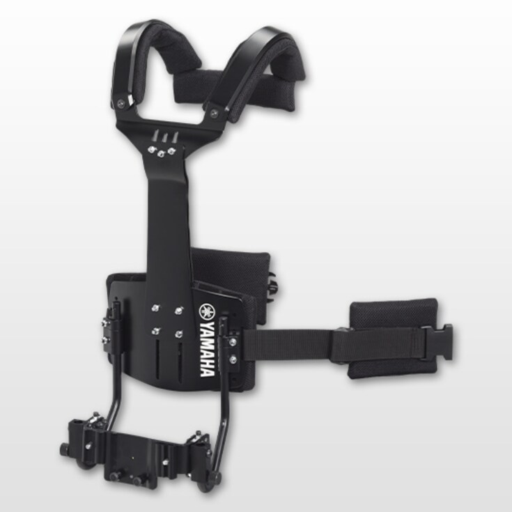 Adjustment mechanisms provided for the belly plate, chest plate, and arm attachment sections make it easy to achieve an optimum fit for users with a wide range of body shapes, while also allowing easy adjustment of instrument height to suit personal preference and maximize playability.