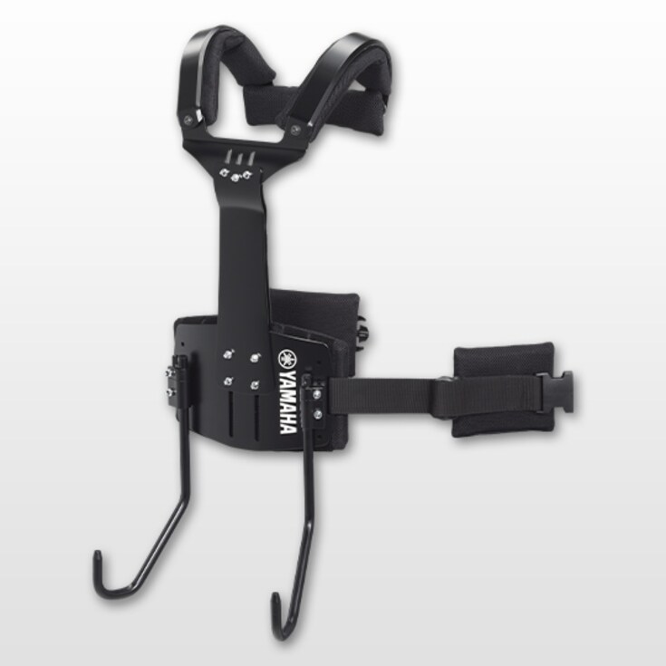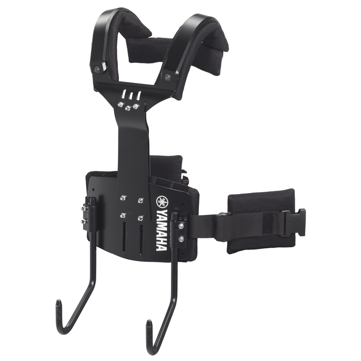 Adjustment mechanisms provided for the belly plate, chest plate, and arm attachment sections make it easy to achieve an optimum fit for users with a wide range of body shapes, while also allowing easy adjustment of instrument height to suit personal preference and maximize playability.