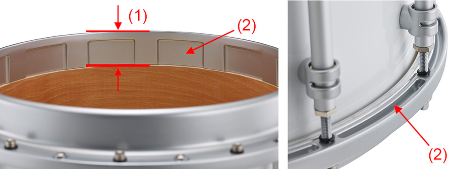 Увеличенный радиус верхней части обода уменьшает повреждение палочек при игре римшотами (удары наносятся по мембране и ободу одновременно). Так же утолщённый обод усиливает тон римшота и способствует более долгому сроку службы.