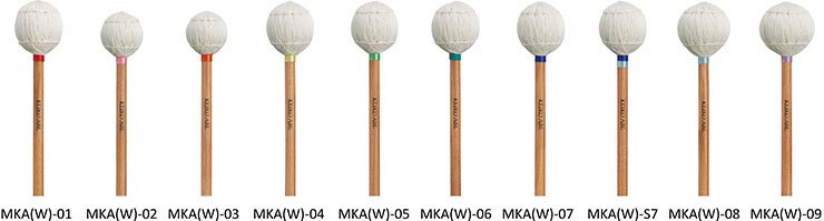 MKA(W)-02/03: MKA(W)-02 and MKA(W)-03 utilize short shafts for fast, intricate mallet work. Hard to tell by looking, but the added weight in the mallet heads offers the percussionist greater possibilities in playing.